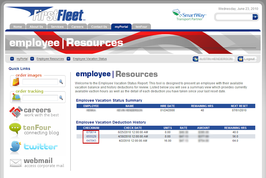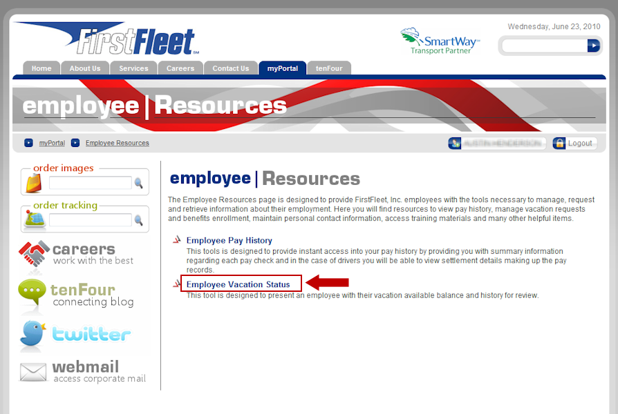 All FirstFleet, Inc. employees now have access to view vacation status using the online tools found at www.firstfleetinc.com. To gain access to this tool you will need a login to the site. Creating a login can be done in a few short steps by using the auto registration process. A blog post on this process can be found here. Once you have your account created you are seconds away from getting access to your current vacation status and history of days used.