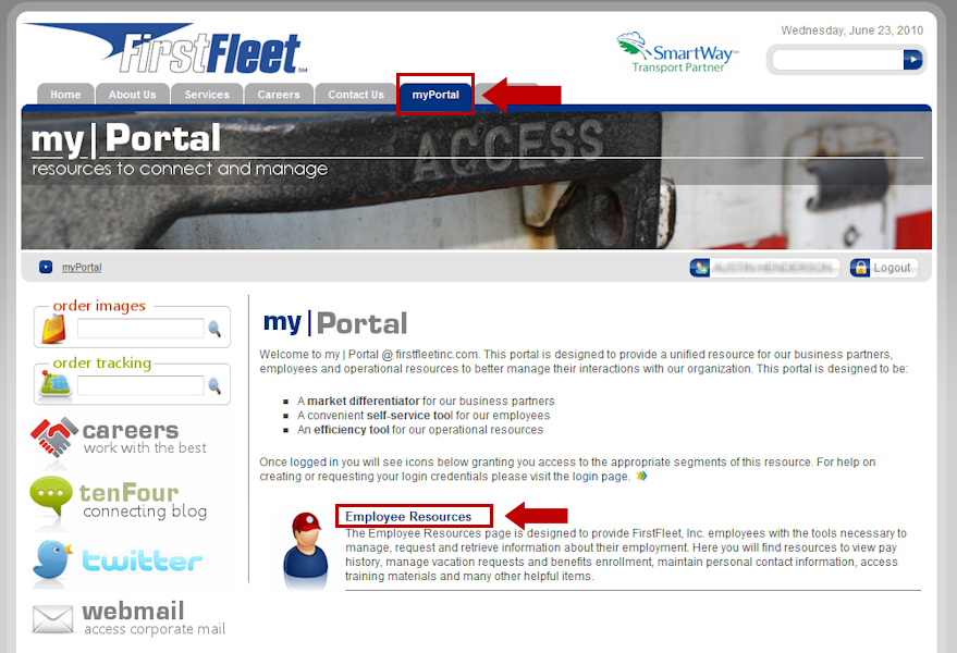 - Click "myPortal" in the top menu bar and then "Employee Resources" (click to view)