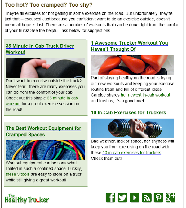 https://www.thehealthytrucker.net) is chock full of relevant information for our associates that spend the majority of your time on the road. This is a site that written by others in the trucking industry that are interested in providing useful tips to keep all of healthy while on the road.