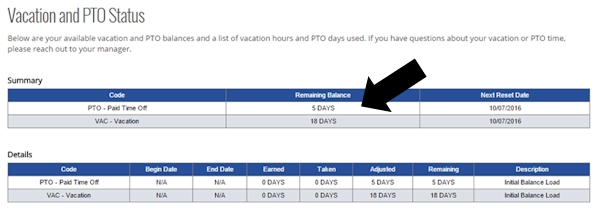 View Vacation & PTO Balances